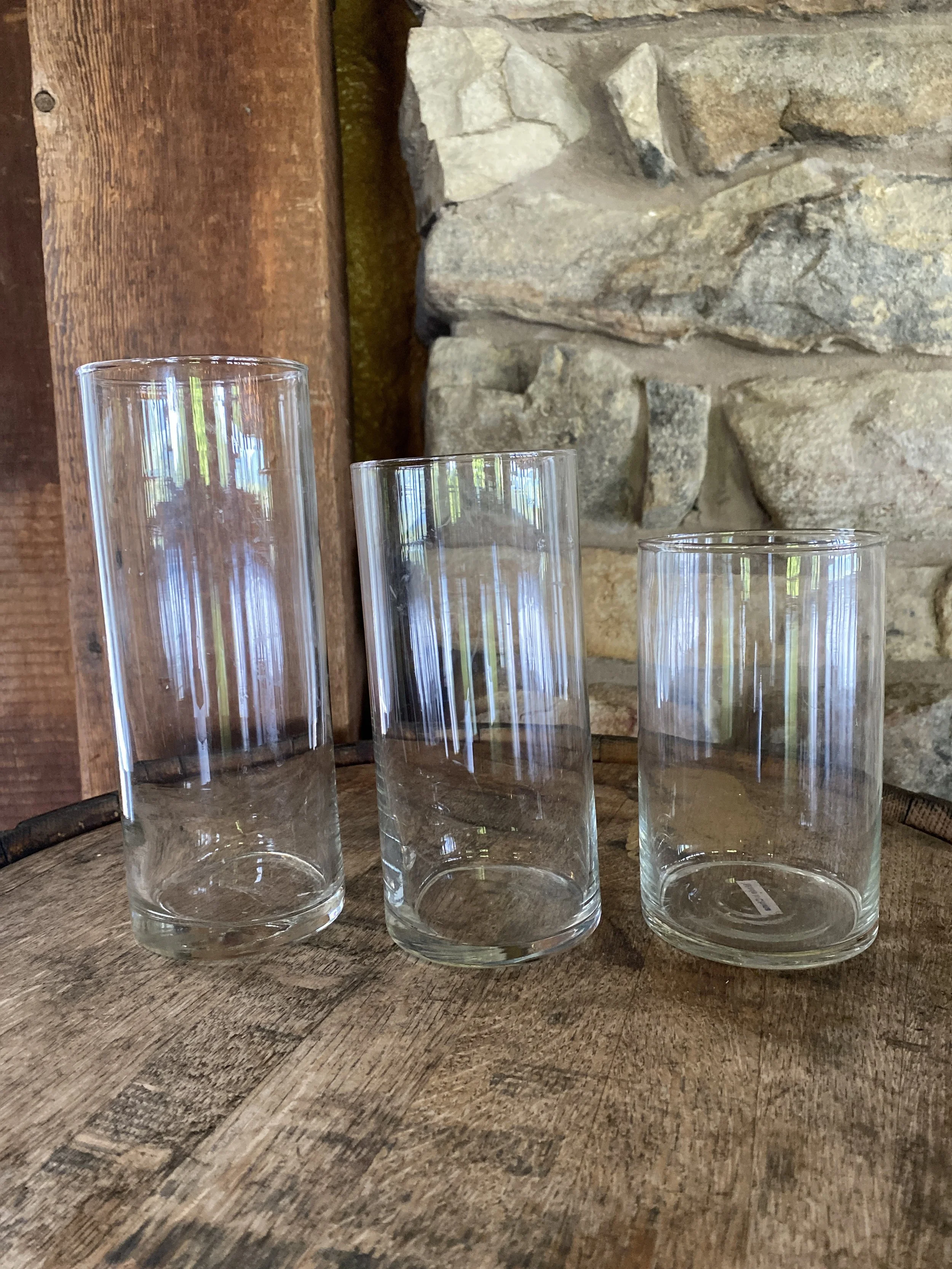 Cylinder Vases Qty: Lg 10 8.75"Hx3.25"Diameter Qty: Med 54 7.25"H x 3.5"Diameter Qty: Sm 10 6"H x 3.5"Diameter